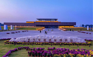 二里頭遺址博物館是河南省洛陽市二里頭考古遺址公園的重要組成部分,位于河南省洛陽市偃師區斟鄩大道1號。該博物館為公共建筑,地下一層,地上三層,建筑總高度為23.8m,總建筑面積31781㎡,其中地上28979㎡,地下2802㎡。建筑輪廓約145m*195m,高度約17m(觀光平臺)。 該工程施工總承包單位為河南國安建設集團有限公司,于2017年9月30日開工,2020年6月29日竣工驗收。 二里頭遺址博物館建筑總體設計以二里頭臺地為意象,建筑天際線中央高起并逐漸融合于大地,象征威儀四方的華夏最早王朝氣象。外觀設計包含了“鑰匙”“盤龍”“銅爵”“玉璋”等二里頭元素。 由于二里頭遺址為土遺址,二里頭文化又是中國青銅時代的開端,所以博物館外觀設計和內部裝修中突出了銅和土的元素。其中,整個二里頭遺址博物館用做舊的紫銅作為外觀主要材料,同周邊綠野環境形成鮮明的對比,中央大廳的銅屋頂設計為自底部向上張開的“大喇叭”,和青銅爵的造型神似。博物館外圍及內部局部裝修采用全手工夯土墻工藝,最終完成的室內外夯土總量超過4000立方米,成為目前世界上規模最大的單體生土建筑。 “銅”和“土”相結合,凸顯了二里頭元素,也彰顯出歷史的厚重與深遠,寓意重回文明起點、看到文明曙光、感受文明傳承。